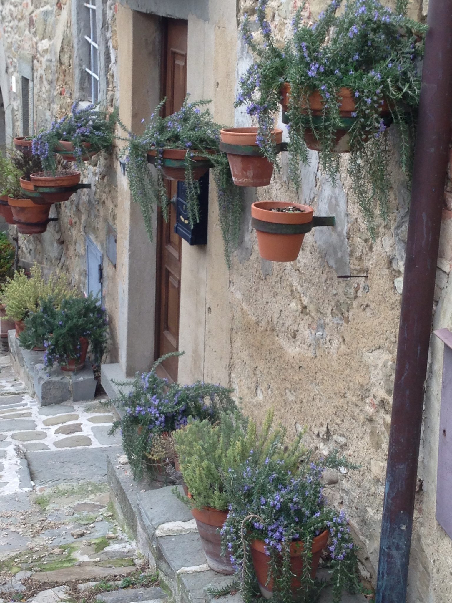 - Cortona februari 2016. Blommande rosmarin i många krukor.